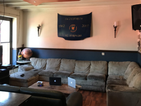 Direct in/naast de woonkamer bevindt zich onze huisbar. De grote huisbar is voorzien van een ‘Heineken’ tap, aangevuld met zijn eigen speciaalbier koelkast. Onder begeleiding van de lekkerste hitjes maken onze dj-booth, disco, verschillende (dames)disputen en natuurlijk de huisbewoners regelmatig de Tilburgse binnenstad onveilig.